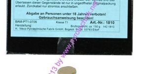 China-Knaller 320 Stück. 0,6g NEM pro Knallkörper EAN: 4001076585602 Hersteller: Weco Preis: 9.49€ zzgl. Versandkosten*