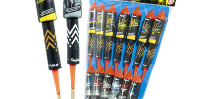 Sortiment aus 13 Raketen mit Silberschweifaufstieg und gutem Preis-Leistungs-Verhältnis. Enthalten sind 2 verschiedene Größen, mit