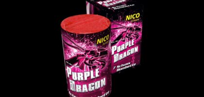 7 Schuss, nacheinander zündend, silbern aufsteigende Leuchtsterne mit Verwandlung zu purpurnen oder lemonfarbigen Sternbuketts. EAN: