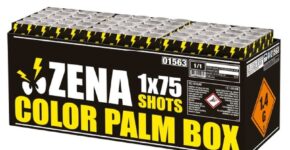 Zena Verbund aus 3 Batterien mit 75 Schüssen. Fette gefärbte Palmeffekte, nur einmal anzünden. EAN: 8714365015631