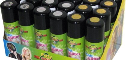 Glitter-Haarspray in praktischer Dose, in den Farben Gold, Silber oder Multicolour à 125 ml Inhalt.