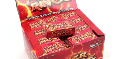 Hüpfende und feuersprühende Ringe. 1 Schachtel á 10 Stück EAN: 4014361344044 Hersteller: Nico Preis: 0.6€