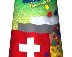 Leuchtfeuerwerk – Professionelles Qualitätsfeuerwerk aus der Schweiz. Mit grüner Flamme beginnender hoch sprühender Gold-Flimmer-Vulkan. EAN: