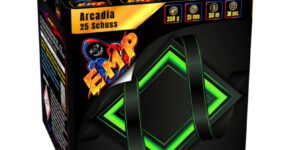 Desert Rose ist eine 25-Schuss Bombettenbatterie mit einem zweistufigen Sternenbukett in 4 unterschiedlichen Farb- und
