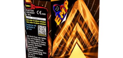 Fette, rote Schweifkometen mit Verwandlung zu großen Poppingstern-Buketts in Gold und Silber. EAN: 4250759503673 Hersteller: