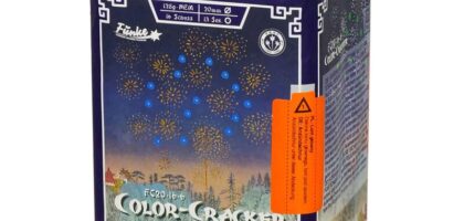 Effekte: 1.) Crackerschweif zu Goldcrackern mit violetten Sternen 2.) Silberner Crackerschweif zu Silbercrackern mit grünen