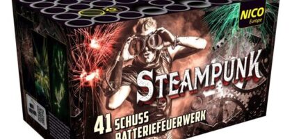 Große 20 Schuss-Batterie mit MAXimaler Nettoexplosivmasse pro Rohr, MAXimalem Kaliber, MAXimalen Zerlegerladungen. Nacheinander mit goldener