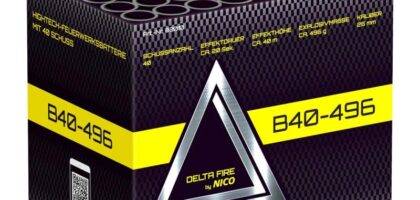 30 Schuss Batterie mit langziehenden Goldflimmer Lanzen, endet mit einer kräftigen 5er-Salve als Finale. EAN: