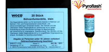 Intensiver Lichtblitz mit einer Wolke aus knisternden Silberfunken. Durchmesser ca. 60cm, ideal als Überraschungseffekt mit